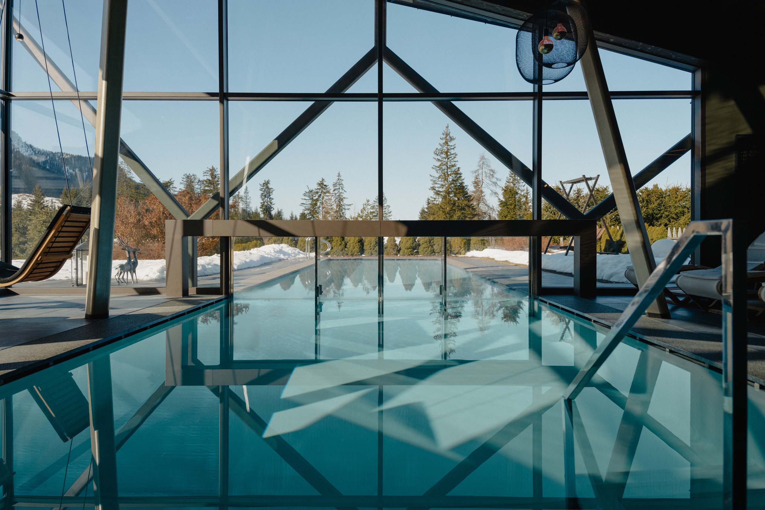 Award-winning pool at our wellness hotel at Lake Carezza/Karersee