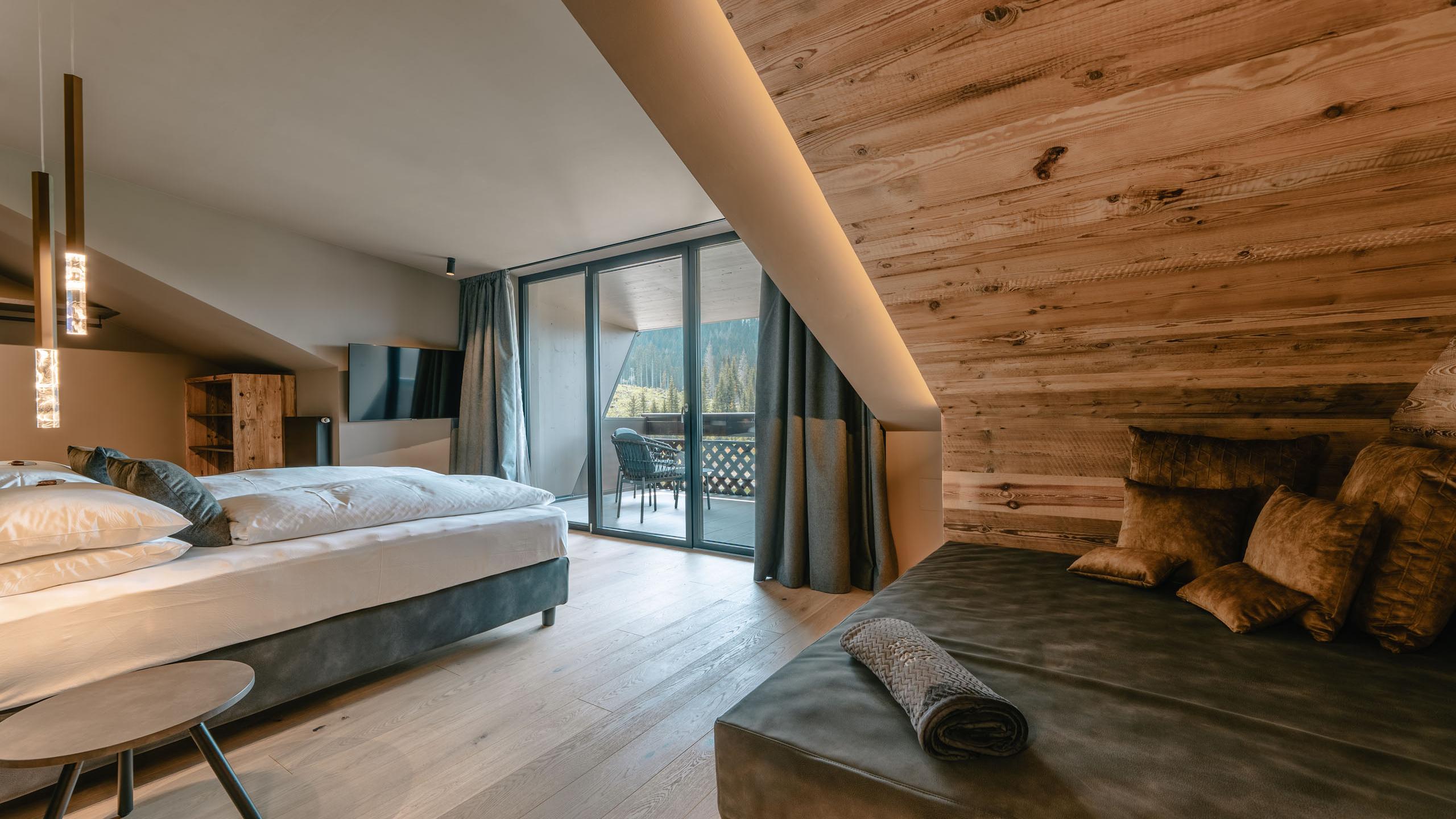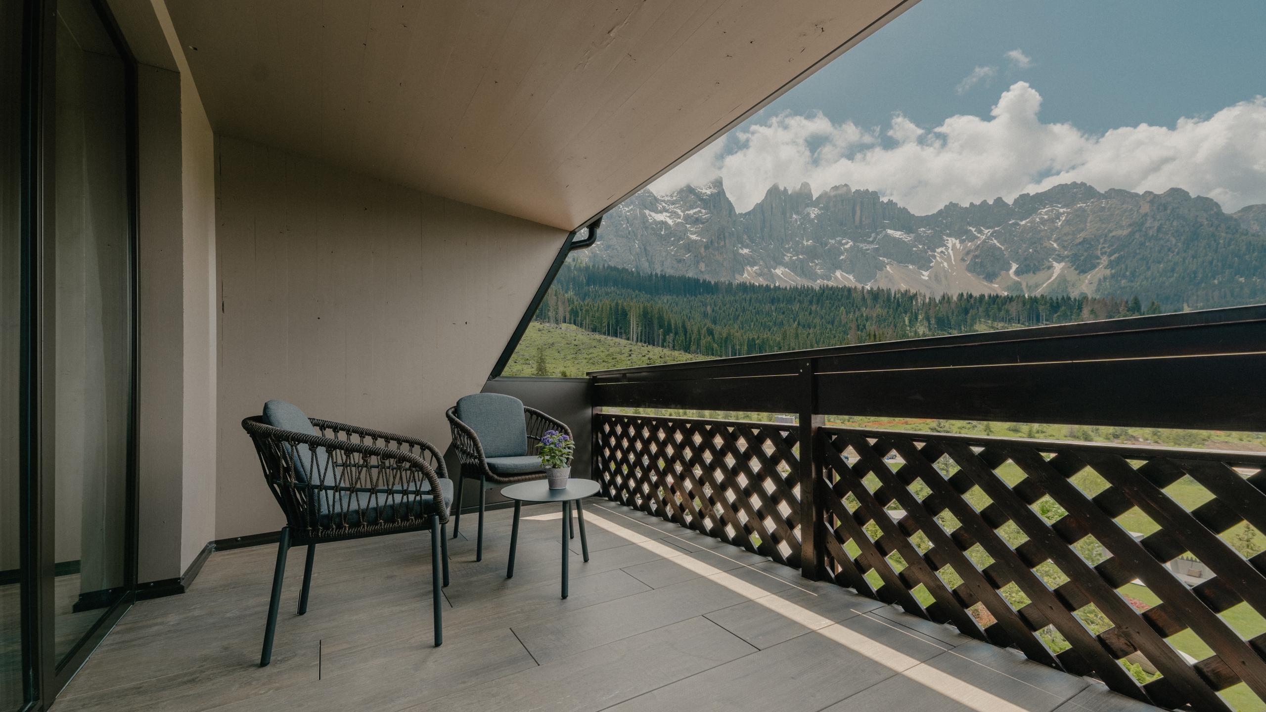 Vi piacerebbe svegliarvi e avere davanti un panorama da sogno? Qui da noi è un rituale quotidiano. È il vostro momento: le finestre panoramiche e il balcone offrono una vista spettacolare sul Catinaccio o sul Latemar.